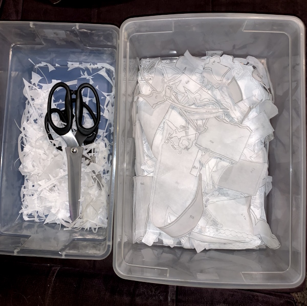 OK. So I’ve been cutting out Wonder Under. It never looks like much at this stage. I see progress. You probably don’t. So here’s Monday night, when I got 1/3 done…