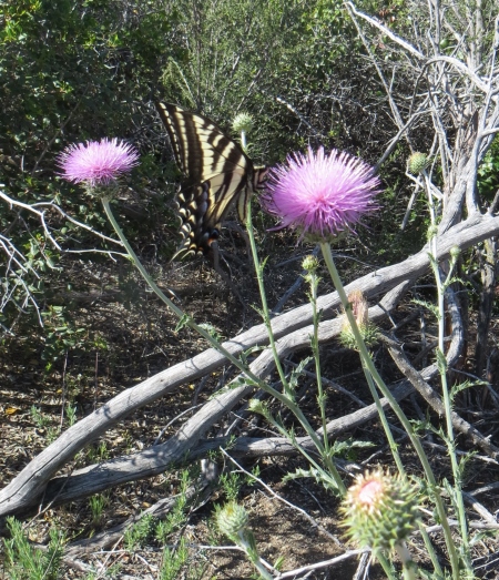 We were dirty and tired, but it was a good hike. Good weather, beautiful landscape and flowers, not particularly difficult (as long as you’ve had enough sleep, I think). I’ve now done 21.5 miles of the PCT…only 2,628.5 miles to go! Or something like that. We did shuttle cars for this trip so we could hike through the whole section and not double back. The section we’re doing in a couple weeks will be north of this…and I think I’ve already done part of it over 10 years ago, right after the fires went through that area.