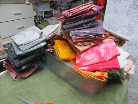It does. This is the pile of fabrics used so far…I’m not even a third of the way through, so there will be lots more.