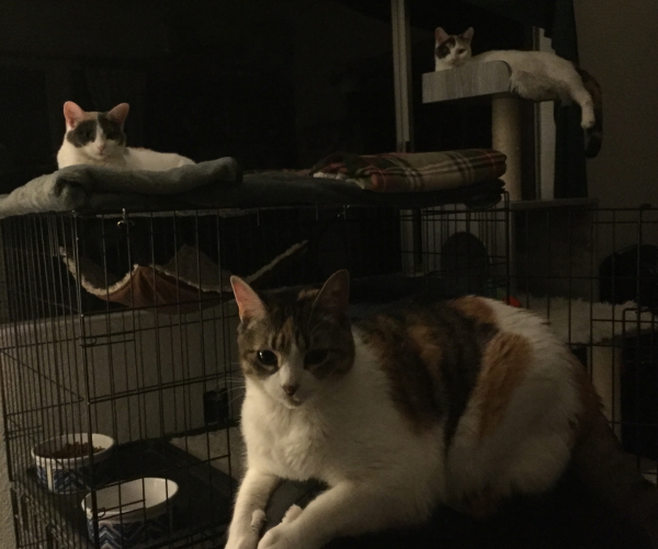 And then when I come back, the cats fight over who gets to rub their head all over my boots.