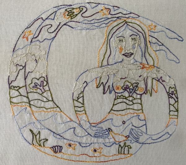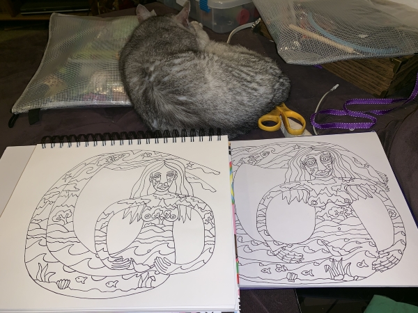 I have a shit-ton of work to do for school this afternoon, so we’ll see what I get done. When I had finished the other embroidery, I didn’t have the next one ready to go, so I pulled this out of the pile and started on it while gaming.