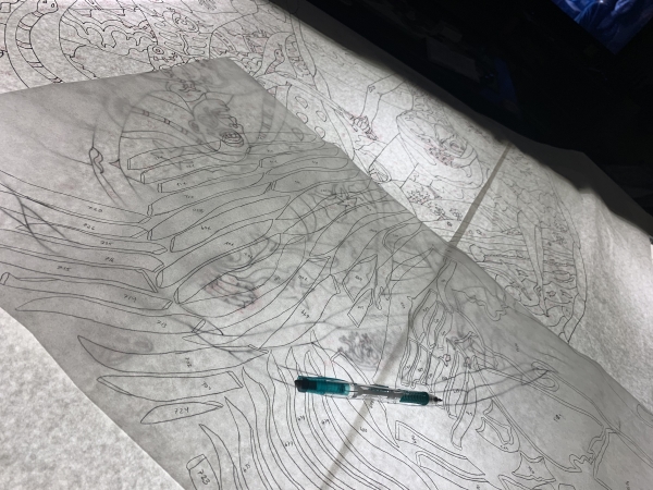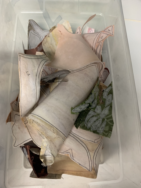 And traced the second one on fabric, although I need to choose threads. And then I traced the Wonder Under and cut it out for the two small quilts.