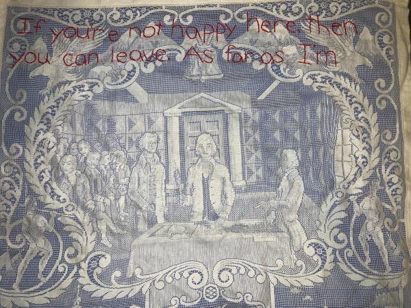 It’s a Cozy Blue Handmade pattern. I suck at ironing stuff on. I bought this in Boston when I visited the girlchild a year and a half ago. Long time.