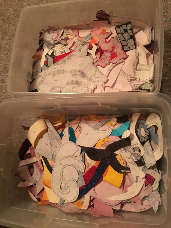 About 40 minutes…lots of tiny pieces, and then I love it when the fusible separates from the paper.