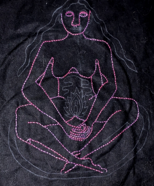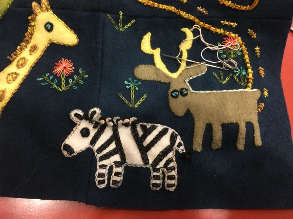 Ugh. Tired. After sorting, I wasn’t ready to go to bed, or ready to come in here and clean so I could start ironing. Not a thing at close to midnight. So I embroidered a little on the third pattern.