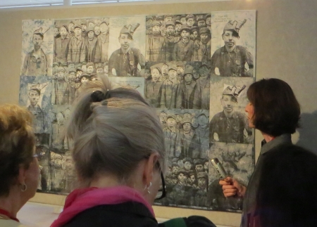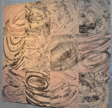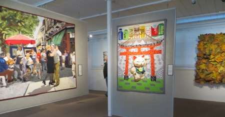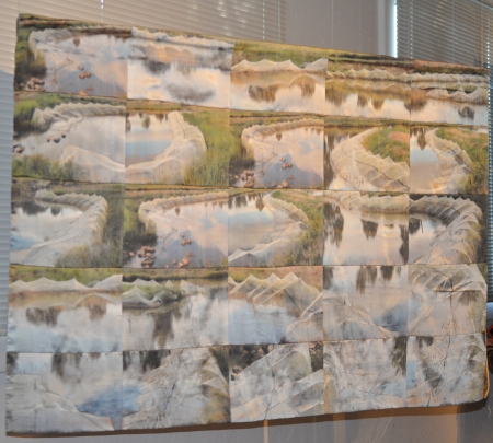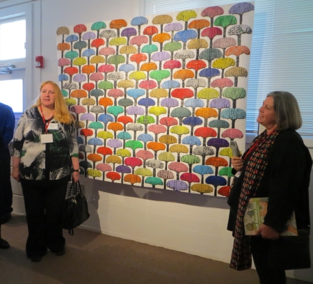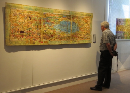 This is another view of Lanter’s Blossoms with Linet’s piece on the right and Christine Chester’s piece Layers of Memory on the left.