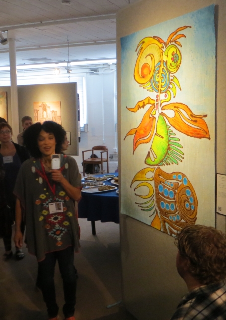 Here is Deidre Adam’s piece Tracings III, with my dad standing next to it. I’ve watched video of how Adams creates her pieces with paint and texture, and they are even more amazing in real life. Photographs just don’t show the glow and texture coming off the real thing.