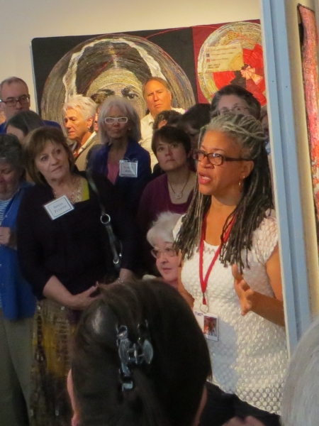 On Saturday afternoon, I attended the SAQA conference upstairs in the Dairy Barn, but that will need to be another post as well, or I will never finish this. Saturday evening was a pizza dinner in the same room…I can’t remember if that was a SAQA thing or an artist thing or what, but that was some of the best part, talking to other artists about their art.