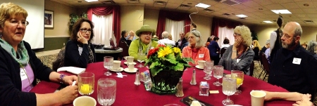 On Sunday morning, I went to the Friends of Fiber Art breakfast. My table mates included Deb Cashatt of Pixeladies fame on the left; Beth Smith from Visions Art Museum (we followed each other back home via Phoenix); the infamous Del Thomas, whose blog I’ve read for years; Marianne Burr; Karen Rips; and her husband Ted.