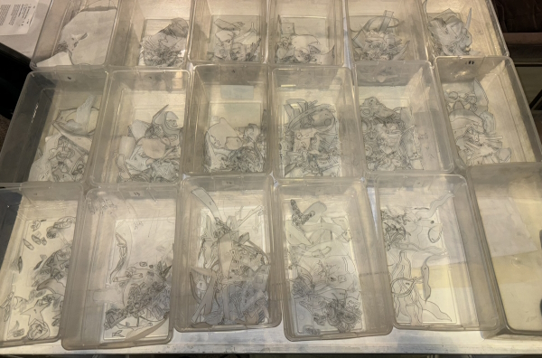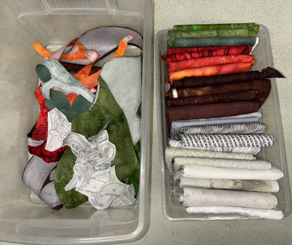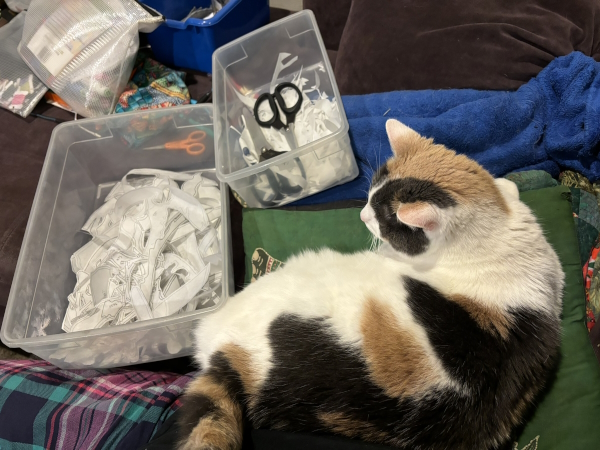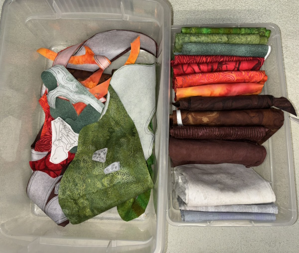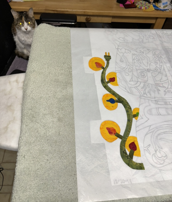 I actually need to use those same fabrics for a bunch of tree parts in the 1400s, and I didn’t have the energy to deal with that last night. Friday, I had to be up early and at the outpatient surgical center for injecting the radio transmitter thing that will help the surgeon on Monday find the lesion in my left breast. It was a lot of squishing. But relatively quick. I went straight to school after to check out, but realized I needed to move all the stuff in the prep room so they could do that floor as well. I wasn’t supposed to lift anything, but um, I did. Oh well. I wasn’t bleeding much so yeah.