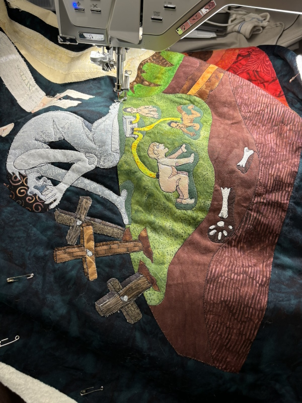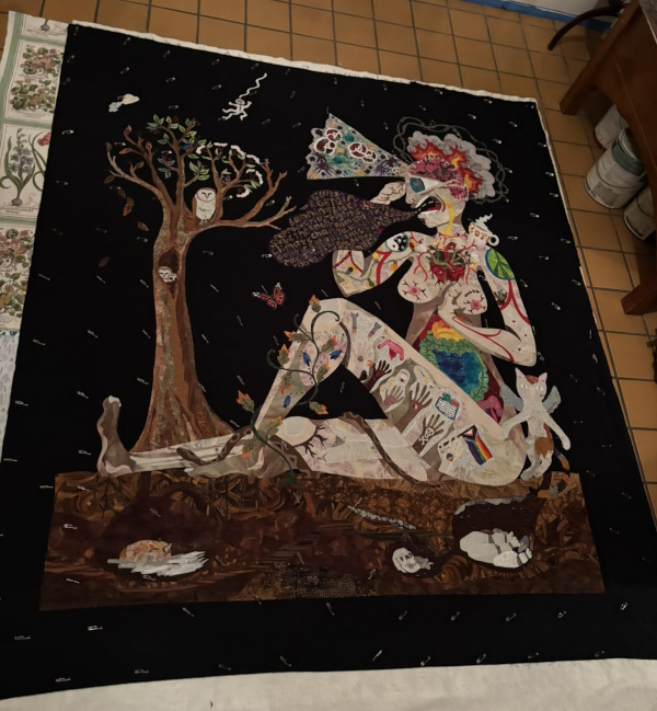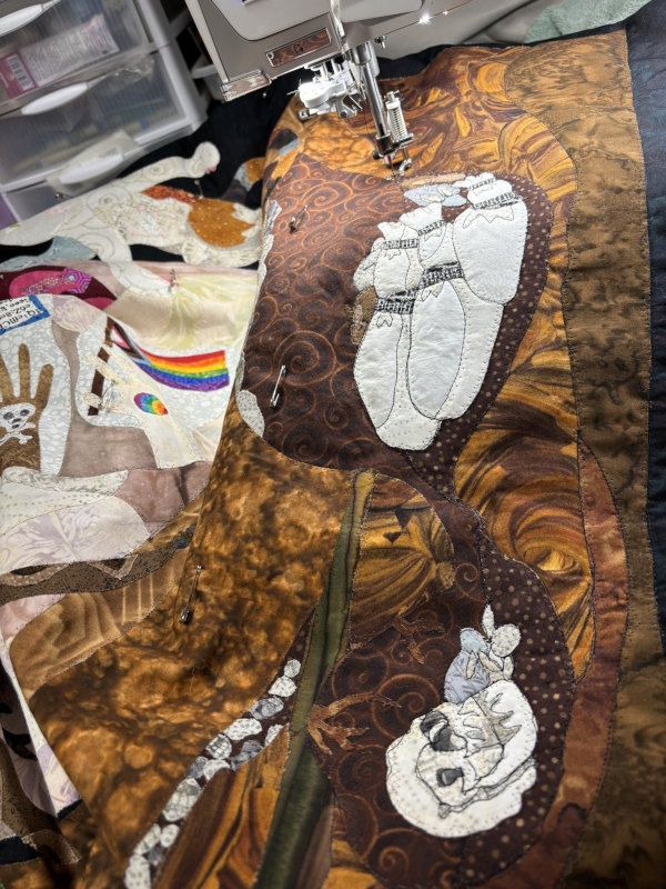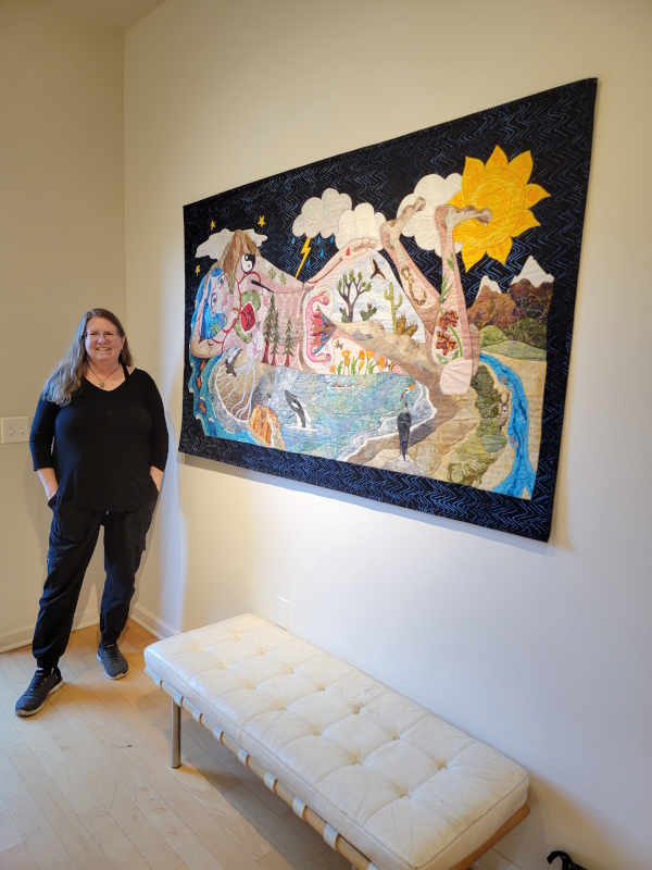 I sat at the SAQA booth on Saturday for a couple of hours with my quilt, Woman 3.0, which is traveling with the StitchPunk exhibit.
