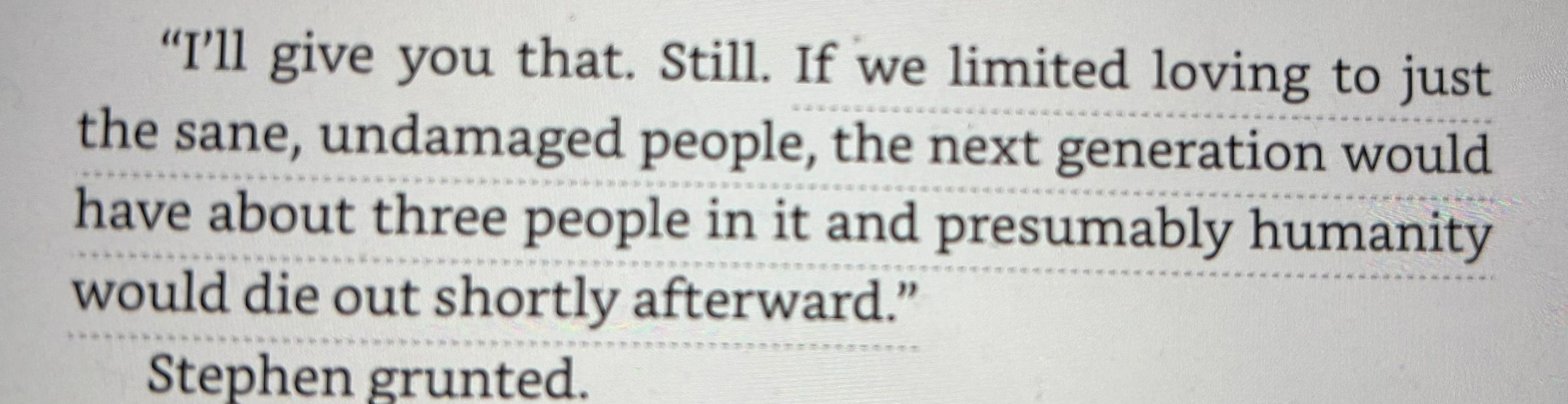 I finished a book yesterday. This is a quote…I used to know how to screenshot stuff with my iPad, but apparently I forgot and resorted to taking a blurry picture with my phone.
