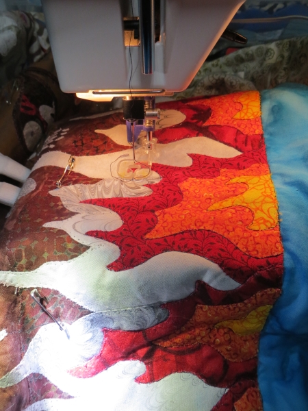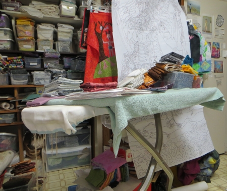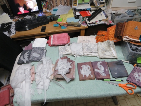 and managed to finish. It took a total of about 7 hours to cut this one out…interesting, because it only has about 360 pieces in it. But many of them are big and complicated pieces, difficult to cut out. So now it’s ready to iron down as well. I will probably save that for after Spring Break, because it’s not a difficult task…it doesn’t require a huge amount of brain power. I really want to get to the fabric-choosing phase of the big quilt over break, which is looking more and more impossible as the days disappear behind me. Oh well. It will all get done. And I need to draw! I have two I need to draw in the next few weeks. I’m not worried. They’re smaller than this one, but inevitably, I will make sure they have 12 trillion pieces in them.