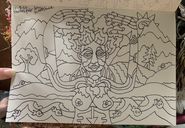 Fast forward to Friday night (I did other stuff, very little of it art related)…I drew at dinner.