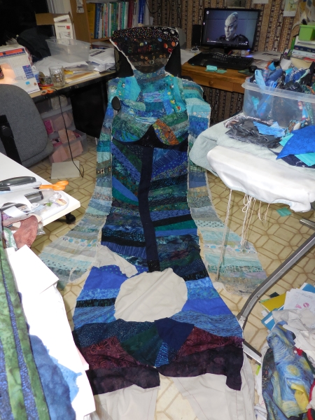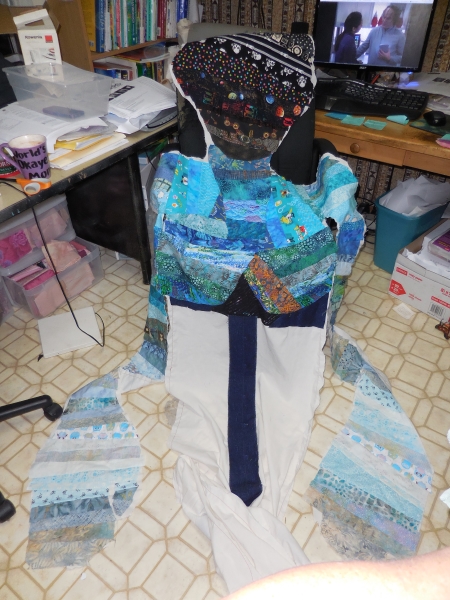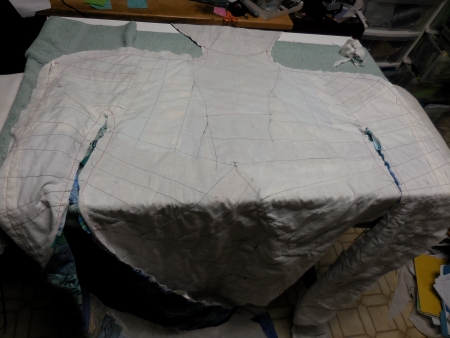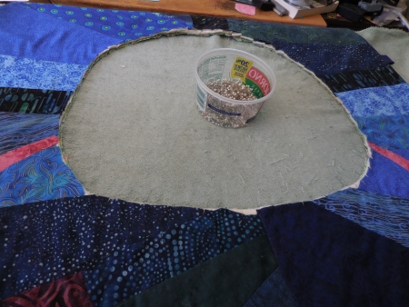 I didn’t get much done on this at the meeting…just butterfly bullion knots. First I did the sleeves on the quilt that needed to go to the photographer.
