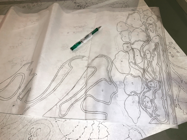 I have been ironing every night, despite the chaos. I will not give up on making art because my day job is untenable, unsustainable, unbearable. In the last two nights, I’ve gotten through about 200 pieces, ironing a pigoon (Margaret Atwood, Oryx and Crake) and all its requisite stuff, including goggles (if you were a pigoon, you’d want goggles too. Don’t lie). And an ‘easy’ button. One hundred years in the future, they won’t know what an ‘easy’ button is. I’m OK with that. I’m in the 1100s. And almost 22 hours of ironing. If you’re wondering. I started on January 30th. Not a fast process. Even with 3-day weekends that are sucked up by the day job.