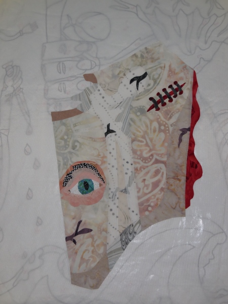 So I didn’t do a lot of it. I’m hoping to do more tomorrow. Hopefully I will feel less tired and more successful at crossing things off my lists. This is part of a leg…a sorta crazy chaotic leg. It will make more sense when the stitching outlines the appropriate bits.