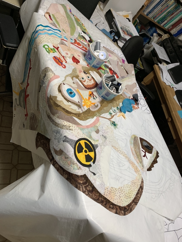 It’ll be fine. There’s a lot of green and brown in this. Not sure what I’m going to do with her hair yet. That’s another large portion of the quilt.