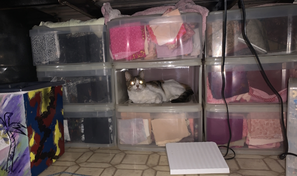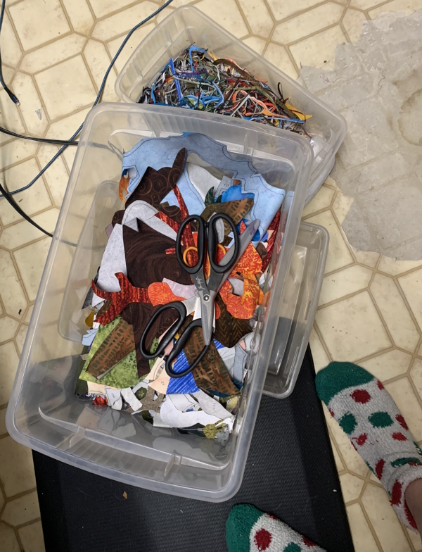 Although my process looks like chaos, it is actually very controlled. Parts of it anyway. The fabric choosing is a crazy thing that happens in my head.