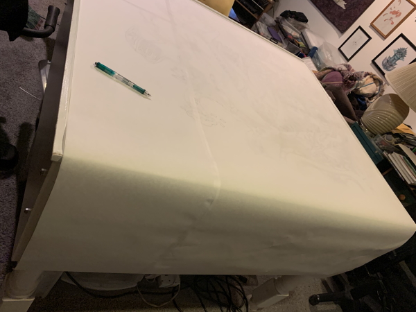 So the drawing. The drawing has progressed. My Art Brain has been engaged, now that it doesn’t have to think about Latin roots and spelling rules. And pretend teaching those. So Friday night, I drew the swamp. It was in my notes…and I’m realizing, I need to write a post that just documents all the stuff I took notes about and was thinking while I was drawing, because it may not be so so obvious from just looking at it. But here’s the swamp…