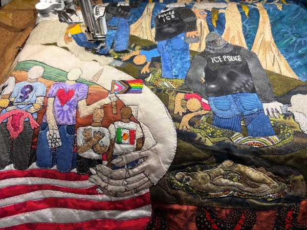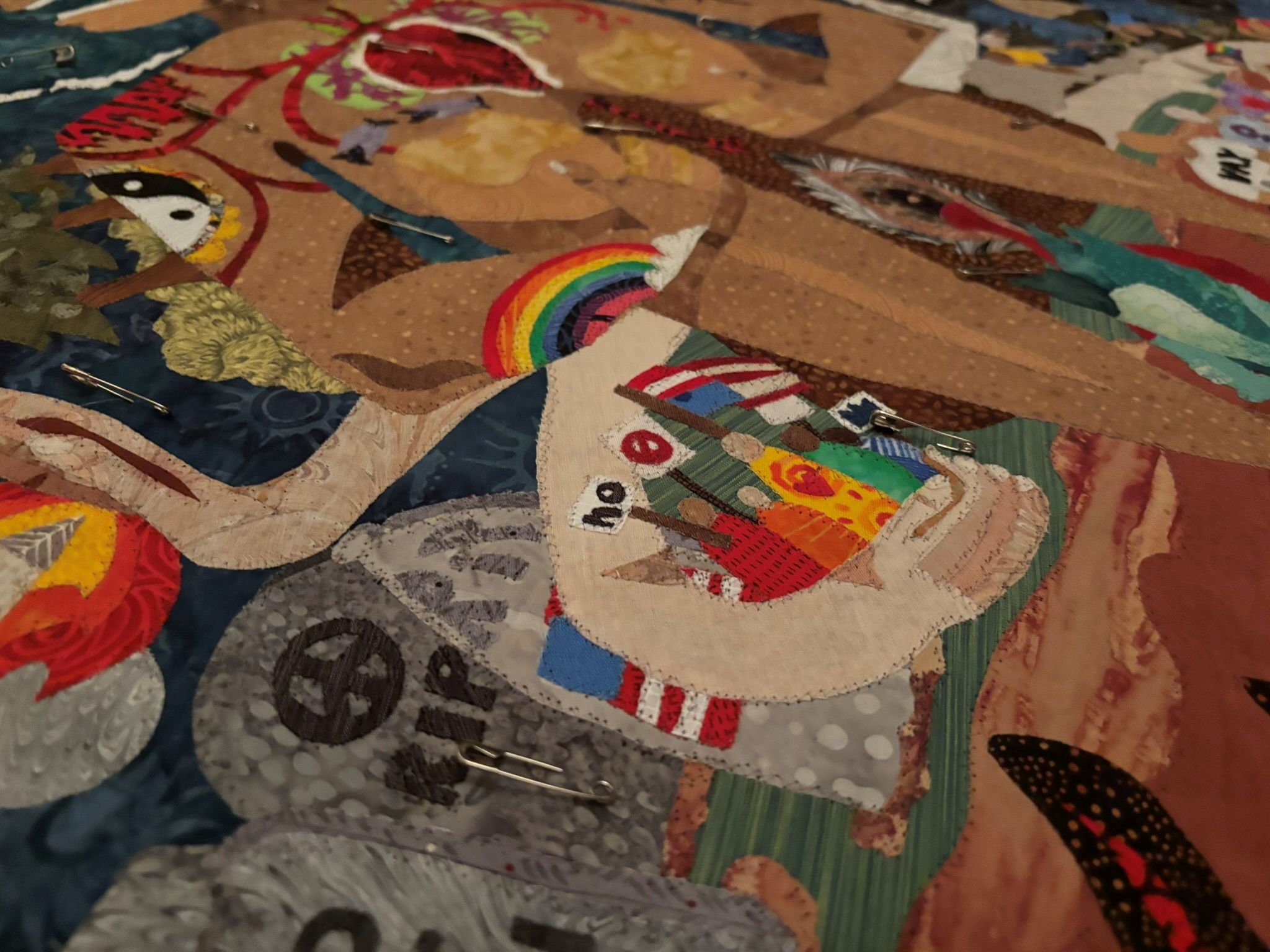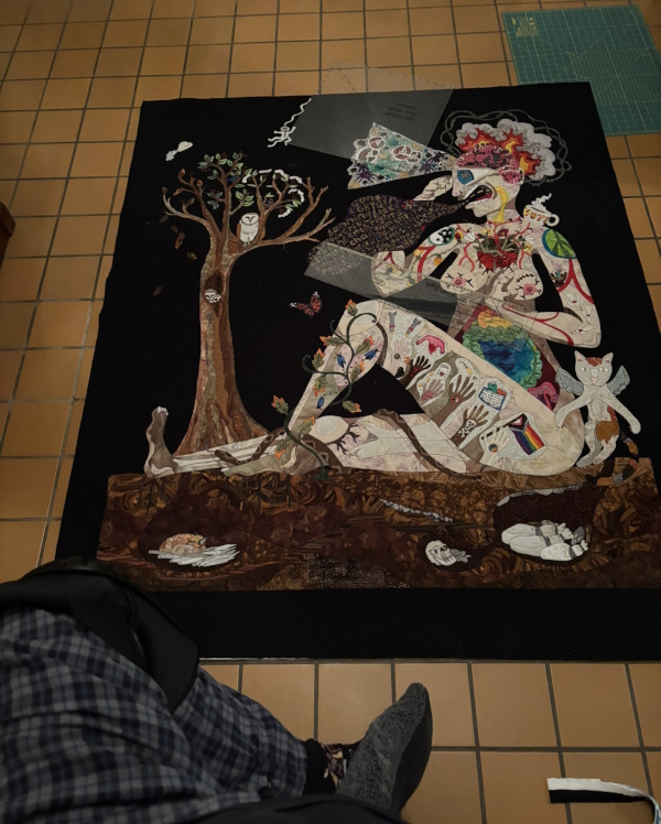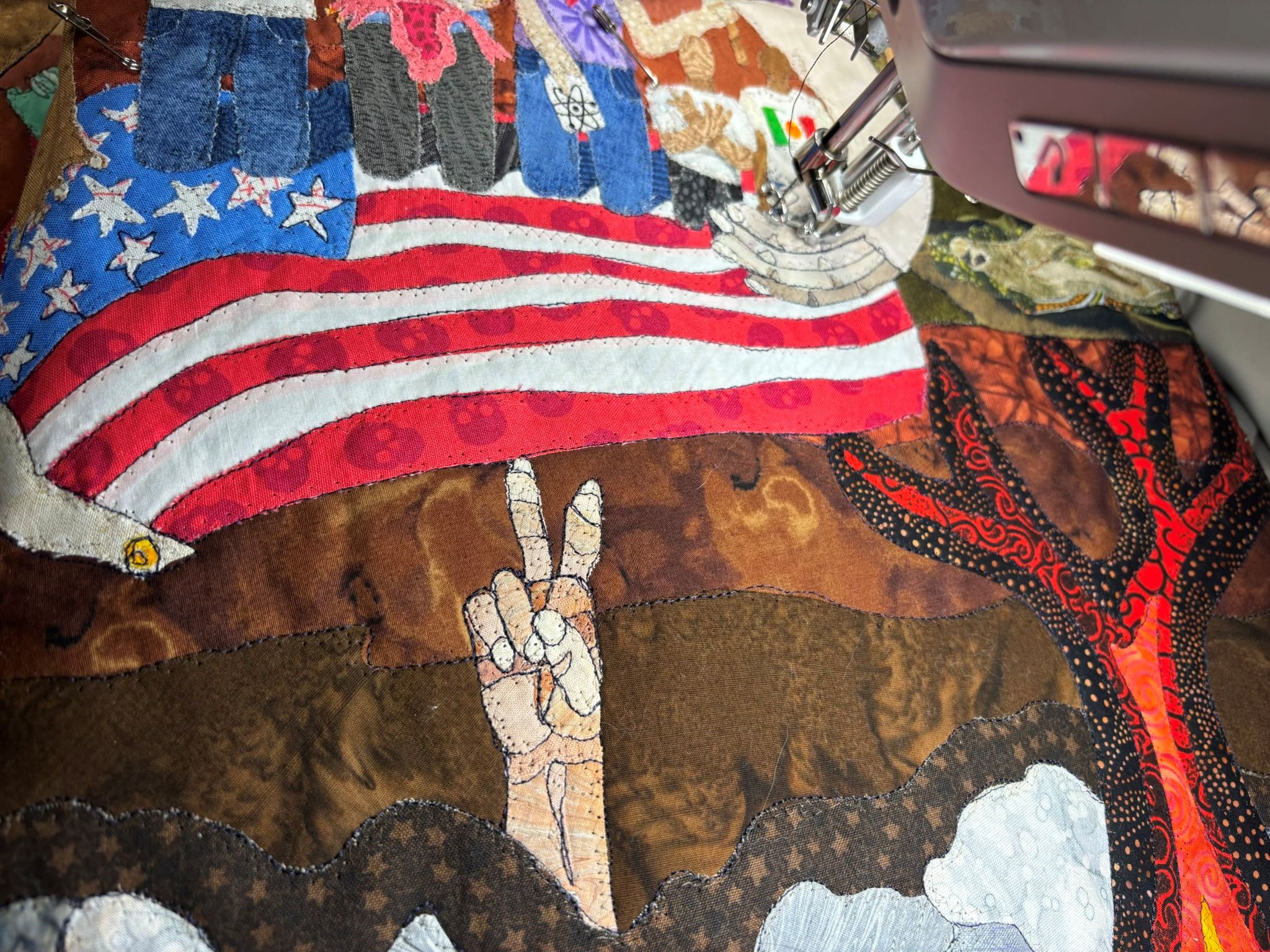 Almost done stitching everything down on this one…then embroidery. I’ve had so little time for embroidery or any handwork lately. I’m struggling to get the time to do any art. School is just such a timesuck. I graded all day Saturday, then finished the major assignment last night. I’m not doing school today, except for posting a video I took on Friday for the absent kids.