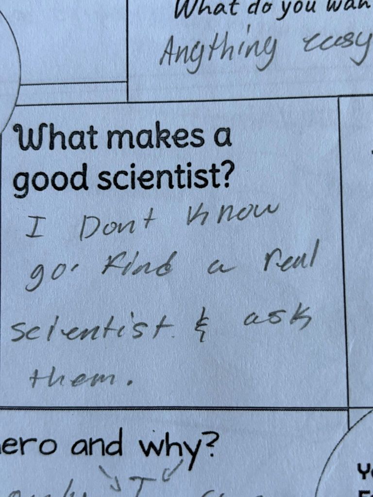 Also, so many of them want to not work at all this year or at any time in the future. So that bodes well for the country…not really; I don’t have huge expectations for 13-year-olds. Also the kids who don’t want to be scientists; they want to be engineers. Um. Hello. What do you think an engineer does? So amusing. I wish them all luck in their futures.