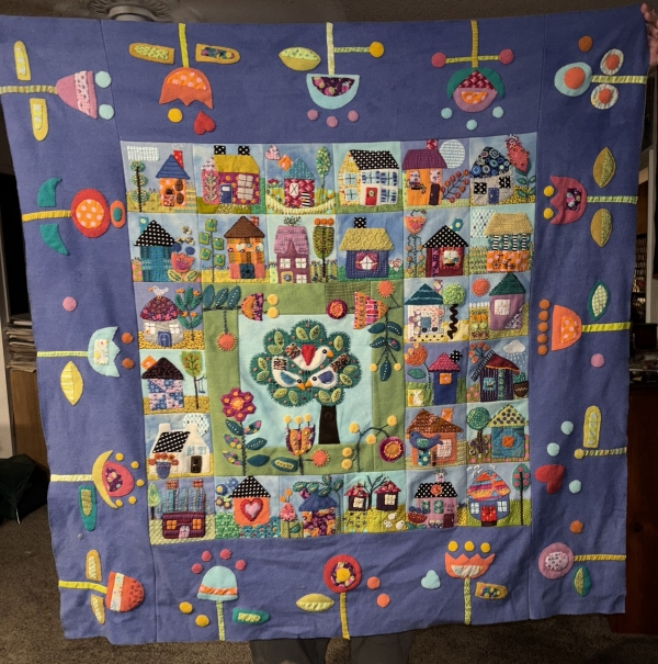 I finally finished appliqueing all the border flowers on Sue Spargo’s Homegrown…