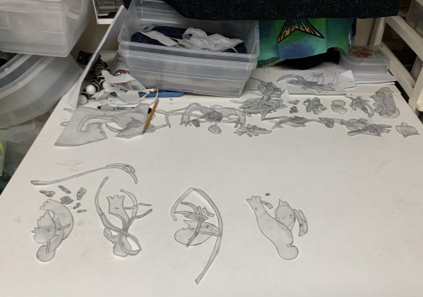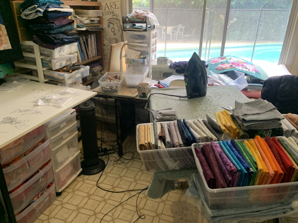 This is why size of quilt isn’t as relevant to me for price as number of pieces is. I have one smaller piece with over 800 pieces in it that is really expensive…but if you think that each small piece needs to be drawn, traced, ironed, trimmed, and ironed down to the backing, you can see how number of pieces adds up. It’s OK for this one. Just when I get to commissions, it becomes an issue. Keep it simple! The quilt I just finished had 800 or so pieces in it…and it’s much bigger, but the cost will probably be similar to the small one I did a few years back. We’ll see. I haven’t calculated time yet on the new one. I’ve had no time to calculate time!