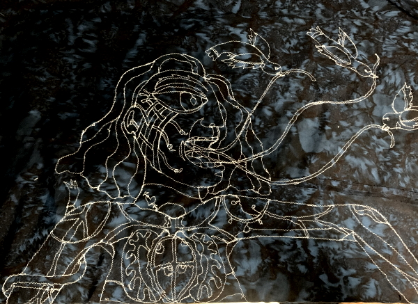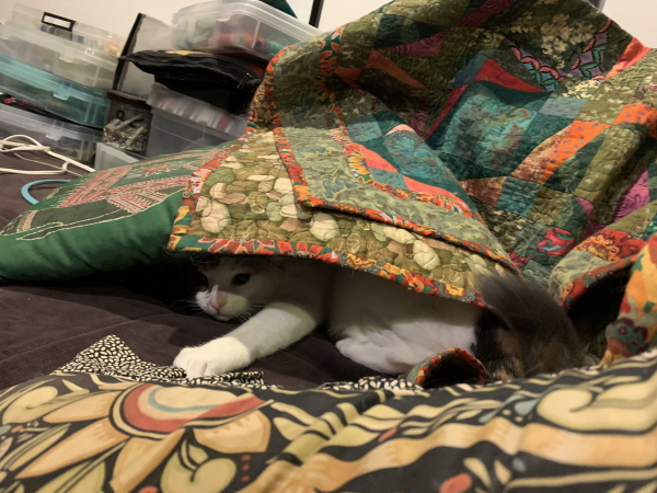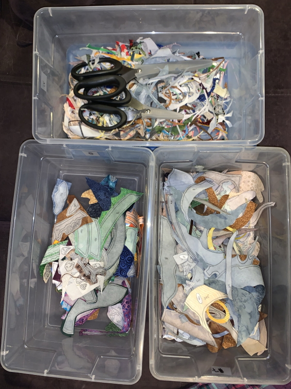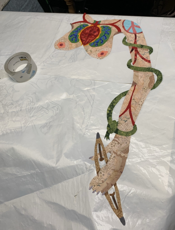 This weekend was also the start of the Surface Design Association online conference, which I signed up for, and happily listened (and watched) to many artists talk about their work, one while driving to pilates, another while finishing grades, and one while prepping lunches. I miss most of it this week, because it’s all during school hours, but they will be recorded. And Saturday morning will be another batch of webinars I can listen to in real time. Not ideal, but doable. When I wasn’t grading or cooking, I was doing the brainless stuff I can handle at the moment…tracing stuff for blocks of the month, which keep me occupied when I don’t have the strength or energy to stand and trace.