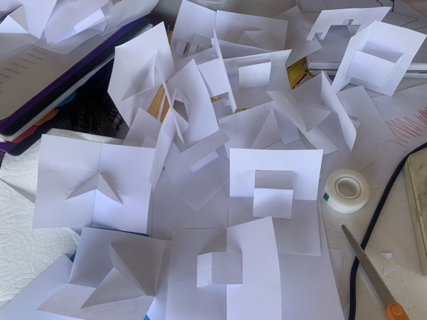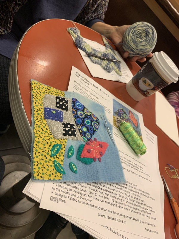 This weekend was also the start of the Surface Design Association online conference, which I signed up for, and happily listened (and watched) to many artists talk about their work, one while driving to pilates, another while finishing grades, and one while prepping lunches. I miss most of it this week, because it’s all during school hours, but they will be recorded. And Saturday morning will be another batch of webinars I can listen to in real time. Not ideal, but doable. When I wasn’t grading or cooking, I was doing the brainless stuff I can handle at the moment…tracing stuff for blocks of the month, which keep me occupied when I don’t have the strength or energy to stand and trace.
