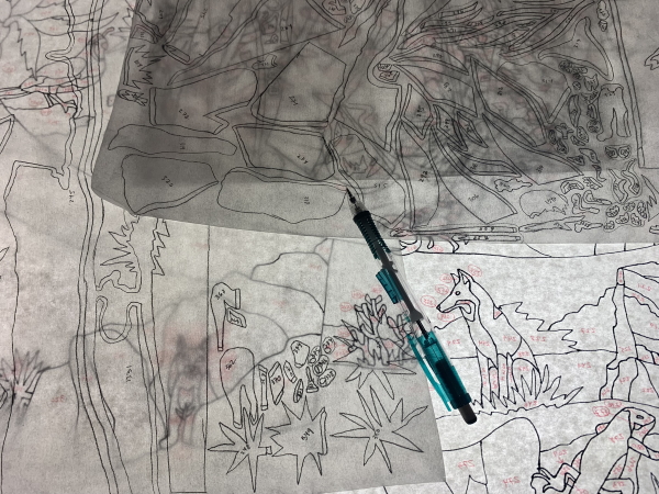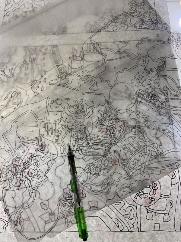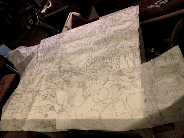 I am a quarter of the way through, but as I was tracing last night, I found a whole section I hadn’t numbered, so now, instead of 1329 pieces, I think there are 1372. Stay tuned for more brain farts.