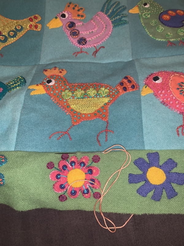 Still not done with the 3rd version of the flowers. Time-fucking-consuming. But relaxing as well. Do this stitch over and over again on 4 flowers. Then do the next stitch.