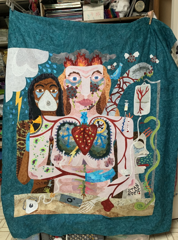 I finished the quilt yesterday. I have a hole in my finger to prove it. I was going to go find the sticky pad things I put on my fingers last night when I was finishing, but I was in a group Zoom in my office and someone was out there yelling at the debate, so I stayed here and poked a bigger hole in my finger. It’ll heal. I haven’t calculated hours yet. I haven’t ironed it. I need to take it to the photographer Monday, so I’ll iron and dehair and maybe put a label on it and then contact the new owner. Which is cool. And then I’ll start drawing the next one, hopefully this weekend. I say that, but we leave for camping after school…so we’ll see how that goes. I packed my clothes (mostly) last night…it’s supposed to get cold and possibly wet. Should be interesting. Also, I originally thought one hike? Apparently now it’s possibly three. We’ll see. I am going into it completely exhausted, but also, I’m not getting enough exercise…so I don’t feel like I’m in shape for anything.