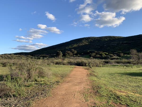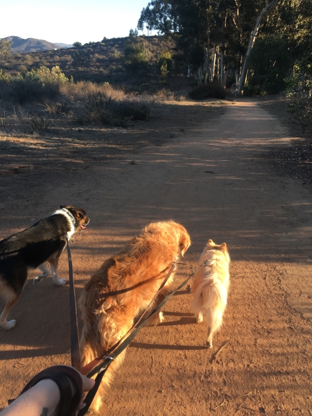 I’ve made this pattern of getting the hell off school campus at least once a week to take the dogs out. It’s so much easier when we get more daylight (I think we’re past 5:15 PM for sunset at this point, so that helps)…I’m glad we chose (well, I chose) this hike yesterday, because there was lots of water still. Straight in front of us is the path…underwater.