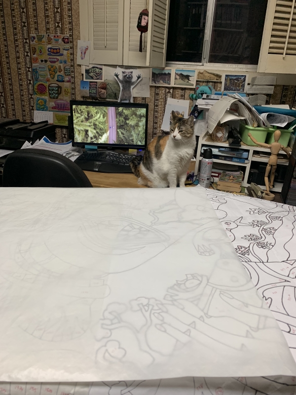 After dinner, I eventually persuaded my legs to stand up again. I didn’t trace for long, because I didn’t realize how late it was…but I’m in the 300s now. I wanted to be much further along, as always. So tracing is on my list for today as well. A nice big fat chunk of it please.
