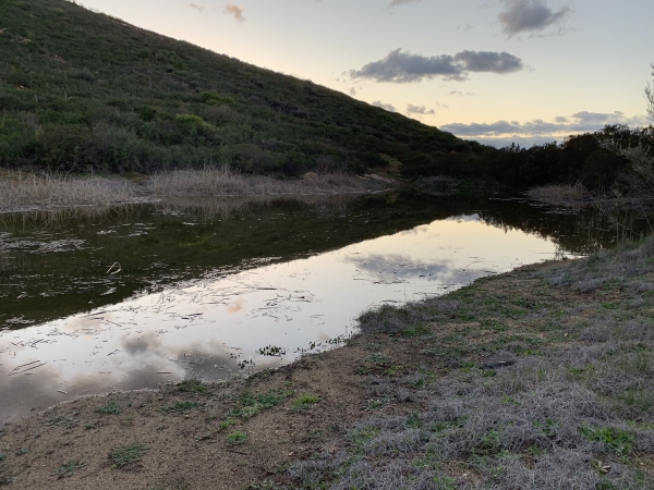 We saw one baby coyote, giant ears, rushing toward a hiding spot. And the vernal pool was full.