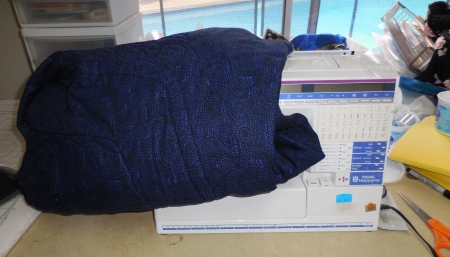 The quilt sat last night, ignored, wrapped up and over the machine so no cat could besmirch it with their hairy bottom.