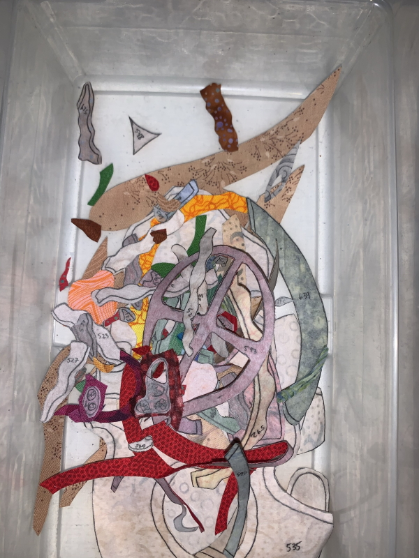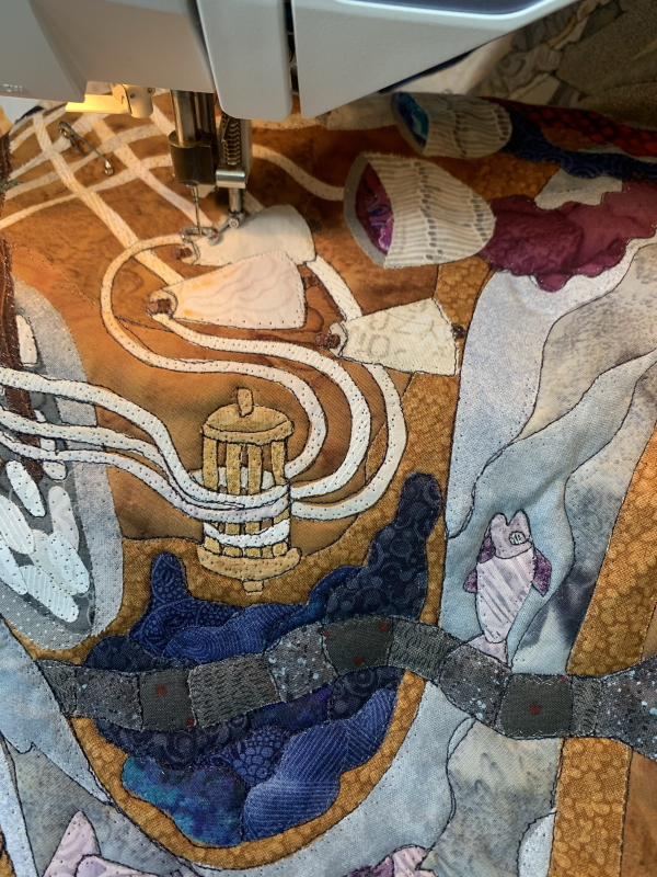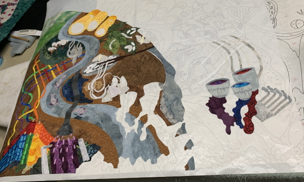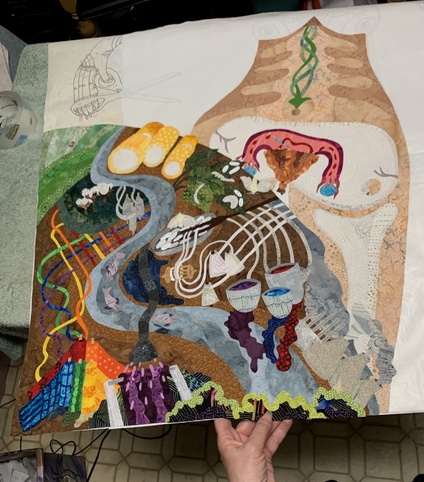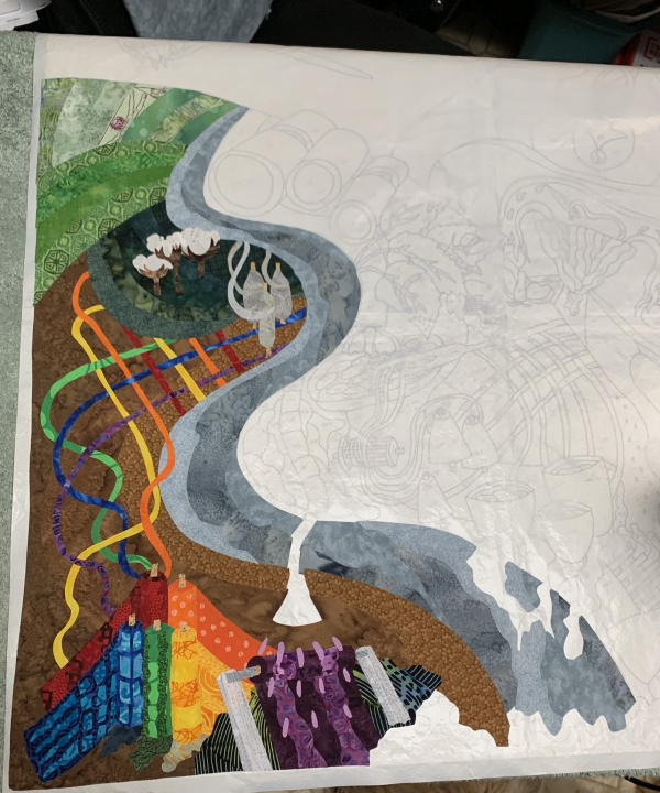 She’s got some vintage quilt blocks in there and lots of images of how we make textiles and how they can damage the Earth.
