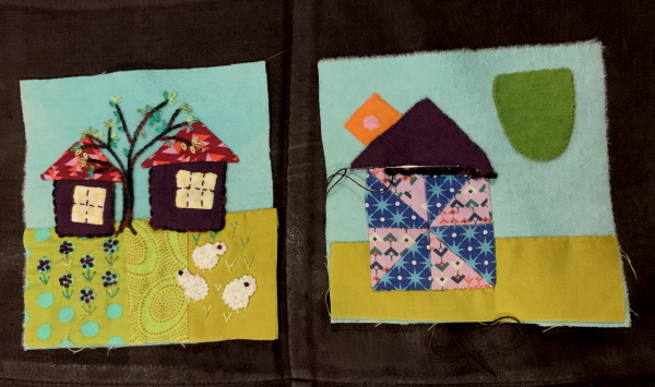 I think this is making silk…that part of the quilt. So I did the silkworms and moths, but these are cocoons being turned into thread for weaving.
