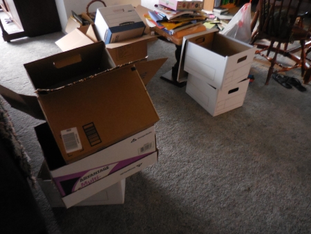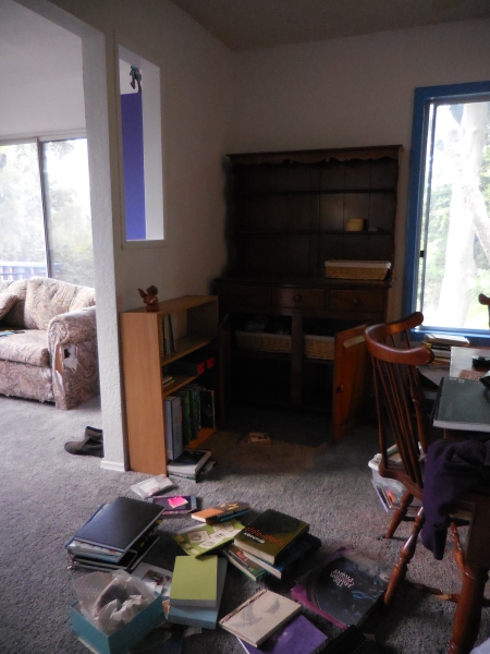 whereas I’m sitting there with that one tiny bookshelf, trying to decide whether I need all these books, finding one acrylic painting book from my dead great-aunt where she had obviously torn out half the pages in the book (huh?) and it was mostly useless. We worship books in my family. It’s very hard to trash anything, let alone get rid of it, especially if it seems to have some historical significance. So in my section, everything is piled up on the floor as I try to decide what to do with everything.