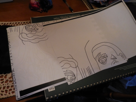 I’m trying to leave space at the top for the tree. But they need feet too. Or do they? Have not decided what happening at the bottom. Actually. Wait. I lie. I have decided. Just now. Huh. The brain works well sometimes, at least on things of significance, like finishing drawings. Cuz that’s gonna save my world.