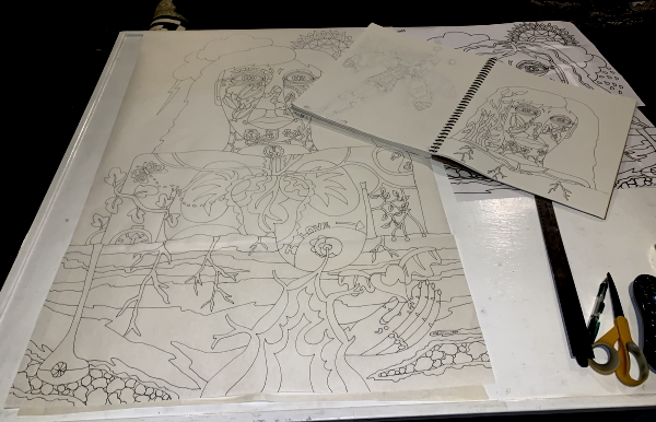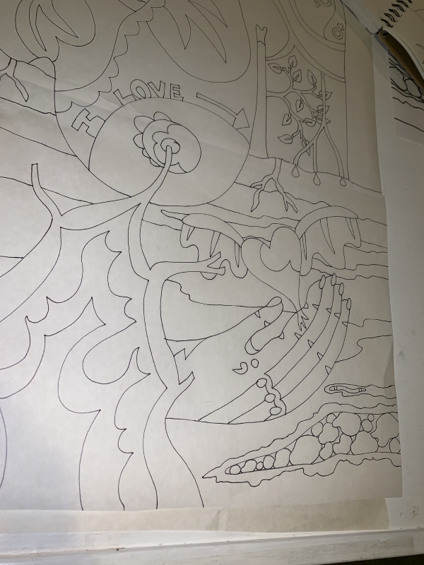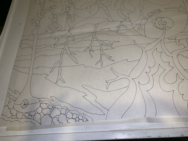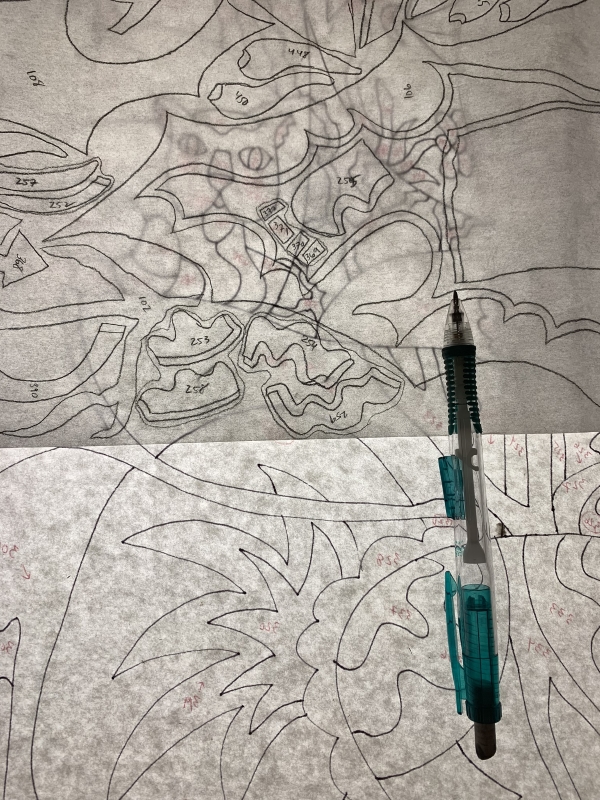 OK. So the art stuff. I finished cutting out all the pieces for the current quilt…just over 15 hours of that.