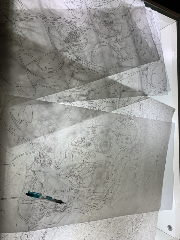 It took an hour and a half. One box has all the pieces that separated…fabric from paper backing…a lot this time. Hopefully I’ll figure out where they all go. Ugh. Hate that part. They’re all like tiny. So ideally, I should be able to start ironing together tonight. I’ll be ironing for a while.