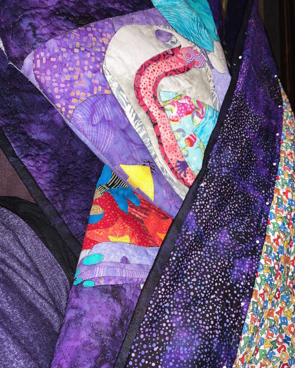 Teeny tiny binding requires tinier stitches. I’m finally on the sleeves, so hopefully, I’ll finish tonight. I have two more Spargo quilts to finish up. I did have a drawing pop into my head during pilates last night (don’t ask…it’s how Art Brain works…I’m trying not to fall over and it’s creating shit). I’m not saying I won’t start some art thing before finishing the two Spargo quilts…I haven’t made any decisions, because I literally don’t have the brain power for that.
