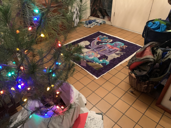 I still haven’t started a new art piece. I need to start drawing, and to do that, I need to not be exhausted at the end of the day. Haven’t gotten there yet. Wednesday night, I finished the Tinsel quilt for my mom…
