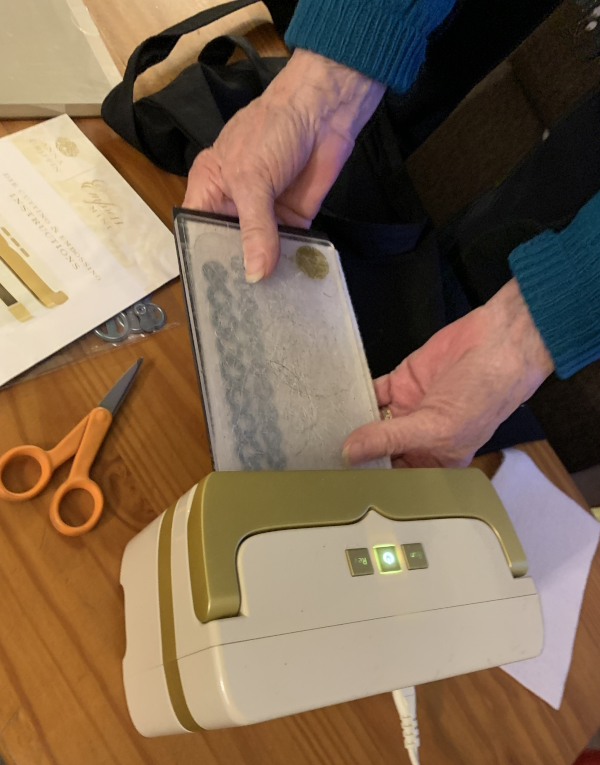 It didn’t have the one size we needed, although the box said it did, which was just weird. So we cut some varying sizes. Figured we’d alternate between 1/8″ bigger and 1/8″ smaller. We’ll see. Certainly this is easier than cutting them out by hand. There aren’t dies though for most of what I do.