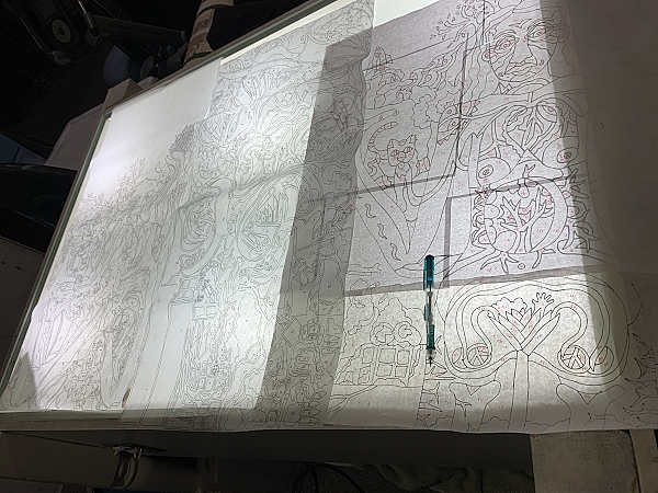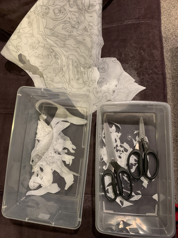 I started at 200%, but the pieces were too small. Then I started cutting and taping them together, numbering them as I went.