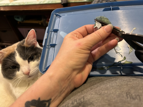 But I have plenty of pictures of her. Here, she wants pets. More pets. This is after she hooked my finger with her claw. Bloody beast.