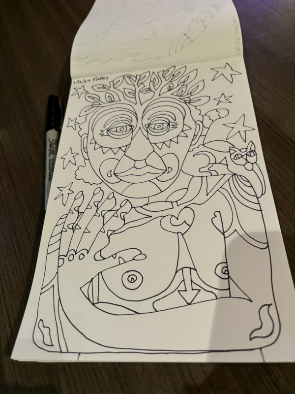 Fast forward to Friday night (I did other stuff, very little of it art related)…I drew at dinner.