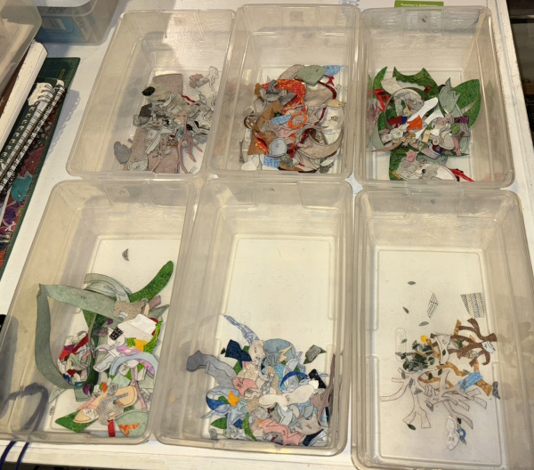 I also washed my storage bins that I use for sorting fabric and Wonder Under. The pencil had been transferring off of the pieces onto the boxes, and I didn’t want the fabric to get dirty. To be honest, I only washed the first 6…because that’s all I need right now. So later today, I’ll be sorting fabric. I also checked my background stash and I have something that will work well for this quilt, so there is (unfortunately) no need to go shopping. Wah. But also, that’s probably a good thing. I’m waiting for the loaner computer to finish updating so I can go lesson plan for a while…not my favorite thing to do, but I have a chunk of time when I’m not super tired, so I should do that now. My future self will appreciate it.